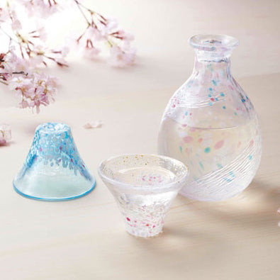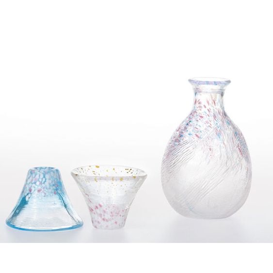 富士山同櫻花同係代表日本嘅象徵。清酒壺同清酒杯琉璃精緻通透,而且附帶原裝木盒,用作送禮絕對係不錯嘅選擇。
