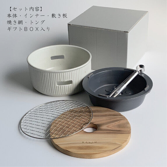 這款SALIU陶瓷桌上燒烤爐,配有不銹鋼夾與耐熱燒烤網,而內膽係用由SALIU獨創嘅黑色粘土耐熱陶土製成,十分耐用,污垢不明顯亦易清潔。